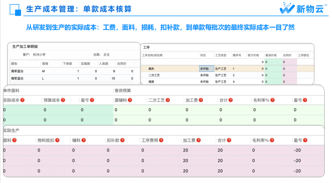 5)样衣成本核价透明化 样衣料、工、费统一登记核价清晰,便于成本控制与报价核价数据可作为大货议价依据