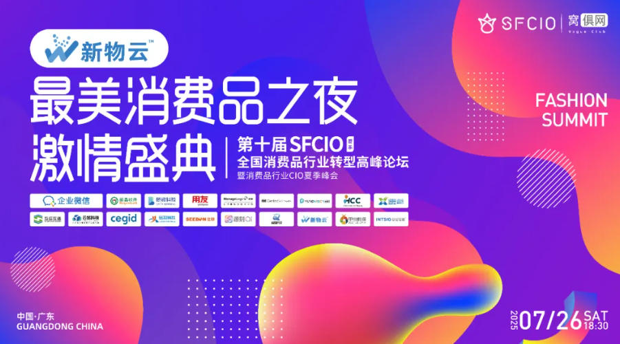 2025年7月26日,由SFCIO全国消费品行业CIO共创平台、窝俱网主办,广州市服装服饰行业商会、深圳市服装供应链协会、EFCIO、全球时尚产业链等组织和机构协办的“第十届全国消费品行业转型高峰论坛暨全国消费品行业CIO夏季峰会”圆满成功举办,来自上海、北京、杭州、长沙、株洲、深圳、东莞、广州等消费品产业聚集地,约260家消费品行业品牌公司的CIO、IT负责人、运营、供应链等高管近350+人参与了本次峰会。同时当天“SFCIO消费品行业CIO”视频号进行直播,超过八千人通过视频号线上观看此次直播盛会。