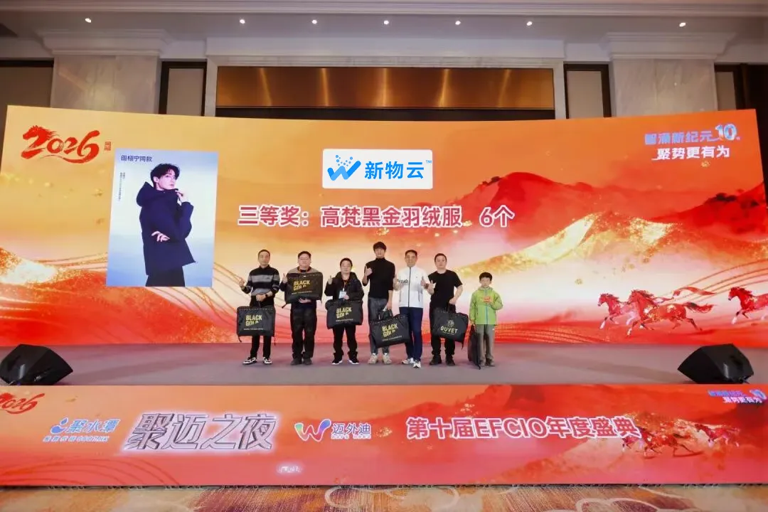 2026 年 1 月 10 日,“智涌新纪元 聚势更有为” 第十届时尚行业 CIO 共创大会暨年度盛典在浙江绍兴圆满落幕。新物云作为深耕纺织服装供应链数智化领域 16 年的服务商,不仅以合作伙伴身份深度参与这场行业盛会,更凭借在供应链数字化领域的扎实实践与行业贡献,斩获 “2025 年度优秀数智化服务商” 荣誉,成为现场聚焦的供应链数智化标杆力量。